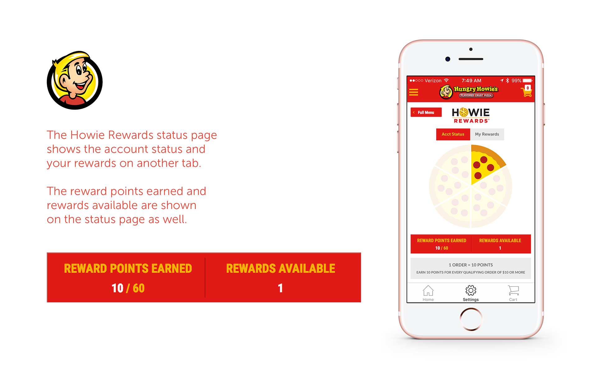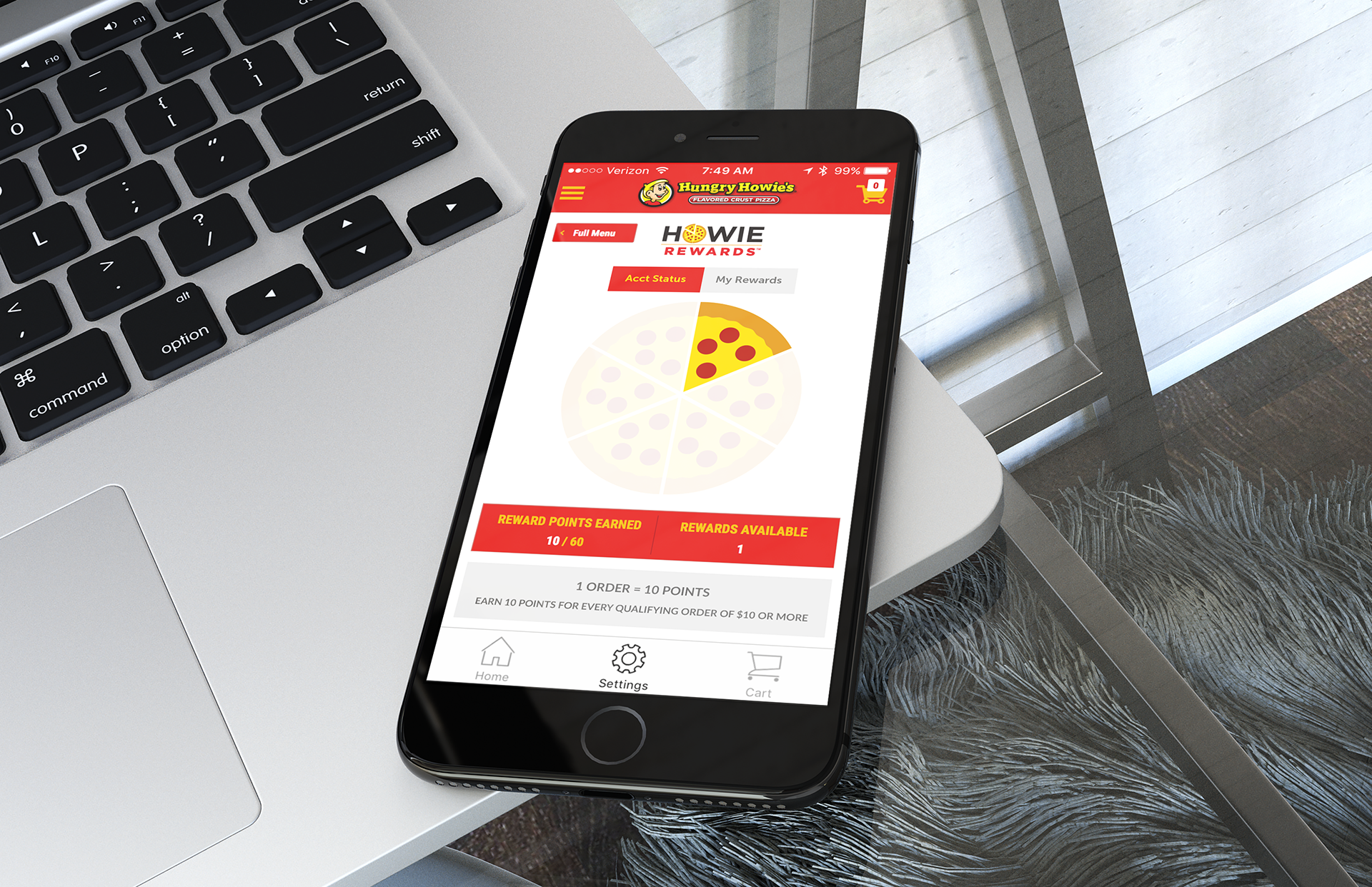 Howie Rewards loyalty app for Hungry Howie's Pizza.